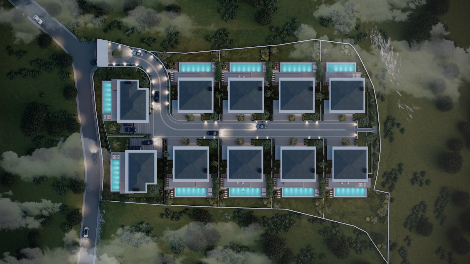Ndërtuar me teknologji moderne dhe materiale të përzgjedhura me kujdes, struktura dallon për përdorimin e elementeve natyrore si druri dhe guri, të integruara në mënyrë harmonike me xhamin dhe metalin, duke krijuar një ambient të ngrohtë dhe të hapur ndaj dritës natyrale. Dritaret e mëdha panoramike dhe format organike të brendshme përçojnë qetësi dhe cilësi jetese.